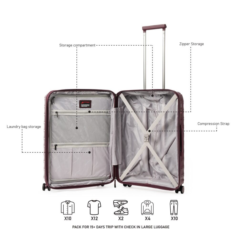 | 28″ – 4.2kg (9.4 lbs) | 28″ – 68 liters | 28 Inches – 34 x 53.5x 78.5 |
